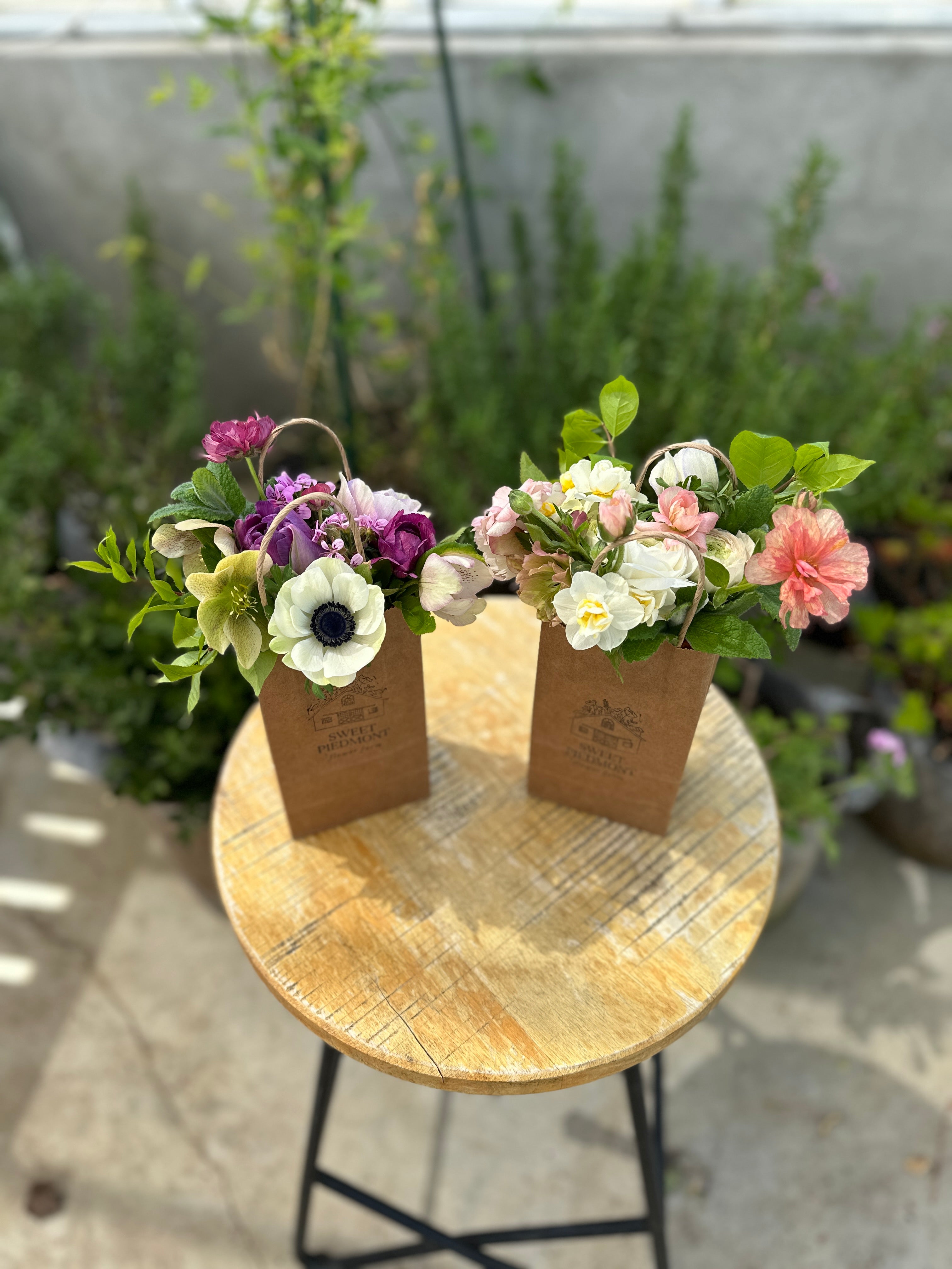 A posey of beautiful blooms nestled into a charming gift bag makes for the perfect event takeaway, party favor, or a small token of appreciation for those you love. All posies are arranged into petite glass jars, which add a fabulous pop of color to any end table, powder room, or kitchen window or sink.